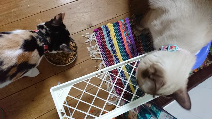 待ちに待ったご飯を無心に食べるにゃんずであった…(つд;*)ホントにごめんよ~💦