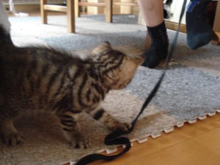 紐出して来たら、遊ぶのなんのって~さすが子猫