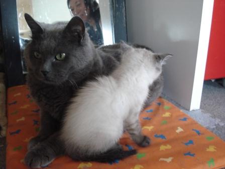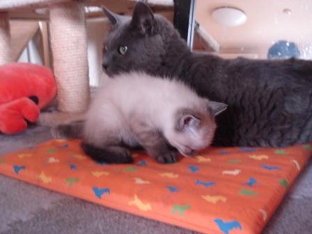 14歳のロシアンもどき巨猫フィ(♂)を筆頭に嫁の美猫カルネ、息子つばき、ぼたん。迷子のコギャル猫あやめも加わり大所帯・・・と思っていたら、あやめ(クロさん所の花のママ)がまた6プニー産んでまさに猫屋敷...