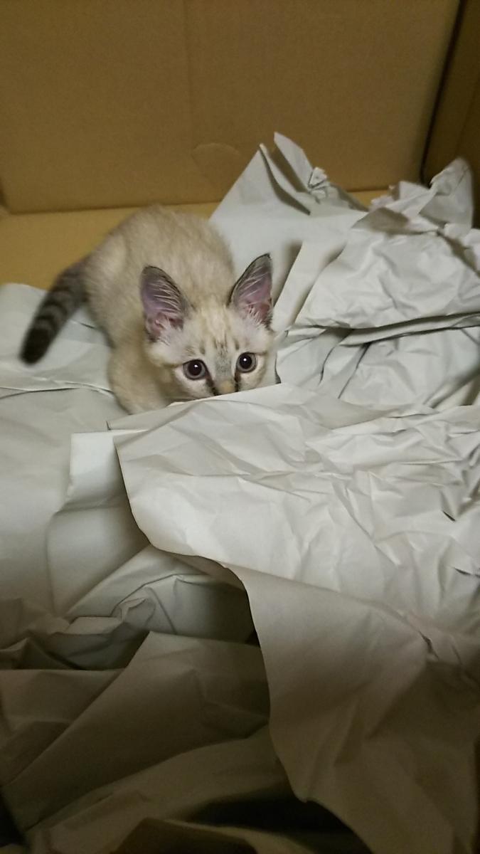 amazonの箱で一人遊び中