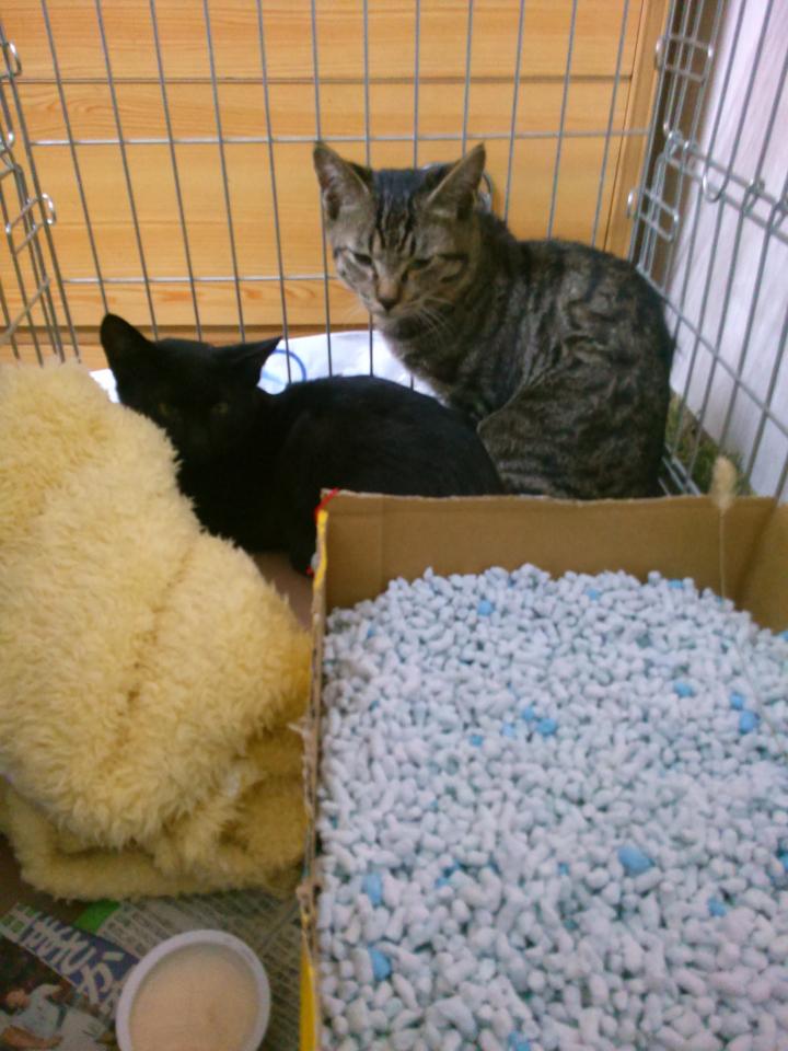 このまま野良猫になってしまうと、どんどん増えてしまうので、なんとか二匹保護できました。兄弟猫のようで仲良しです。