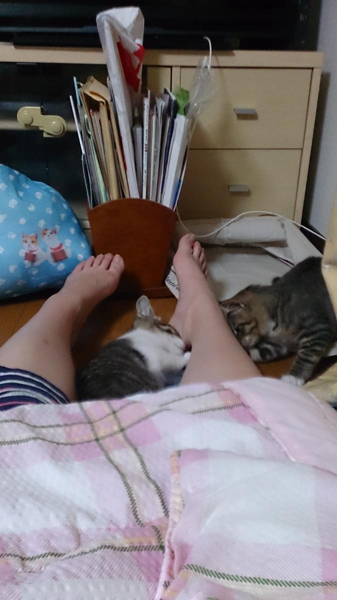 そして夜は私の足の下で格闘開始。