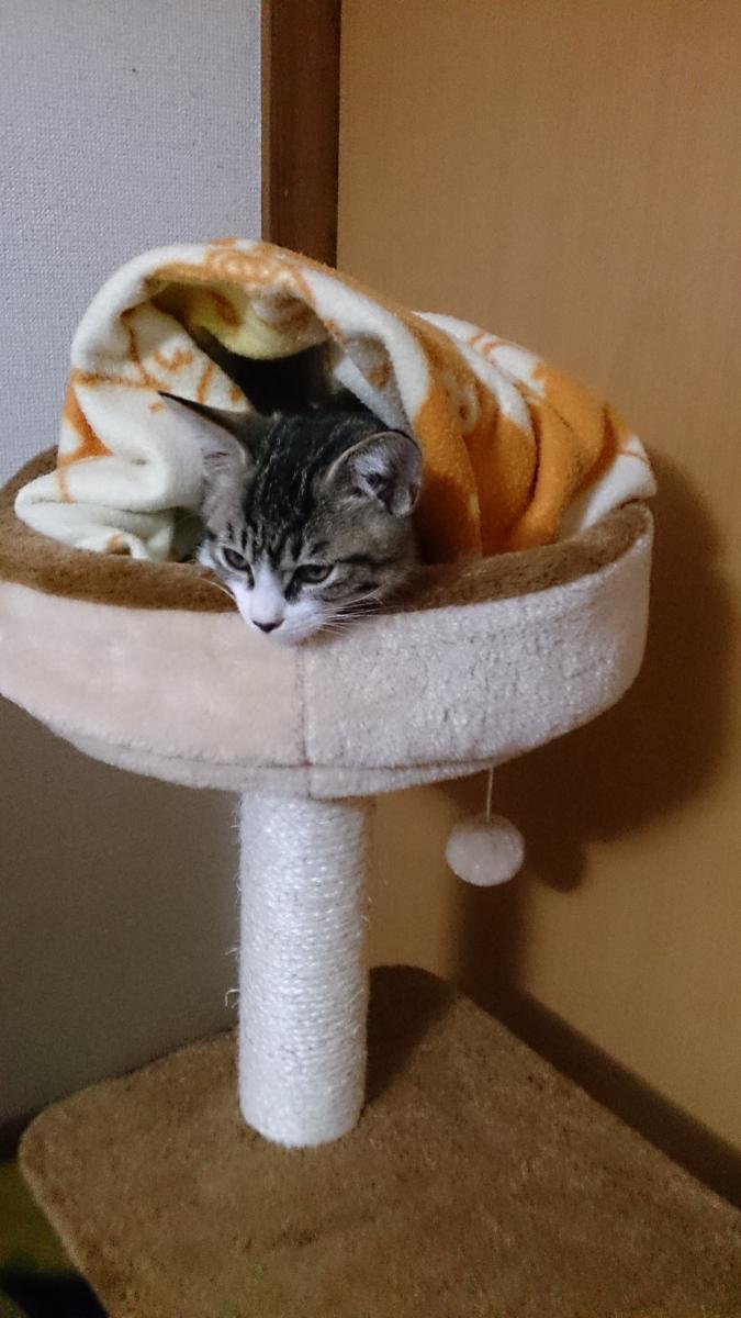 つぶさんはキャットタワーの上。