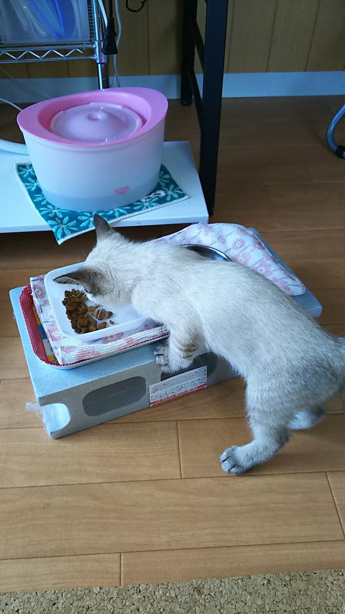 ↓先住猫さんの残した餌を食べたりもします。自分の分も食べ終わってないのに😅