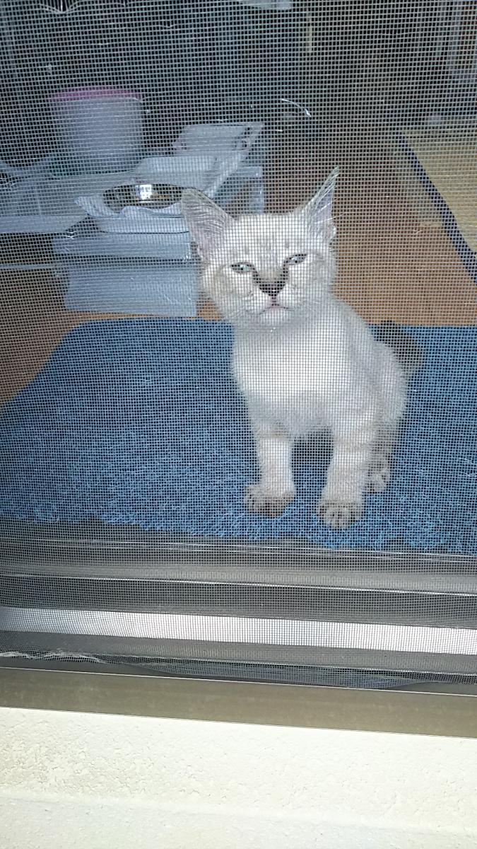 ベランダにだせー、オレもだせー、と網戸越しに訴える猫氏。