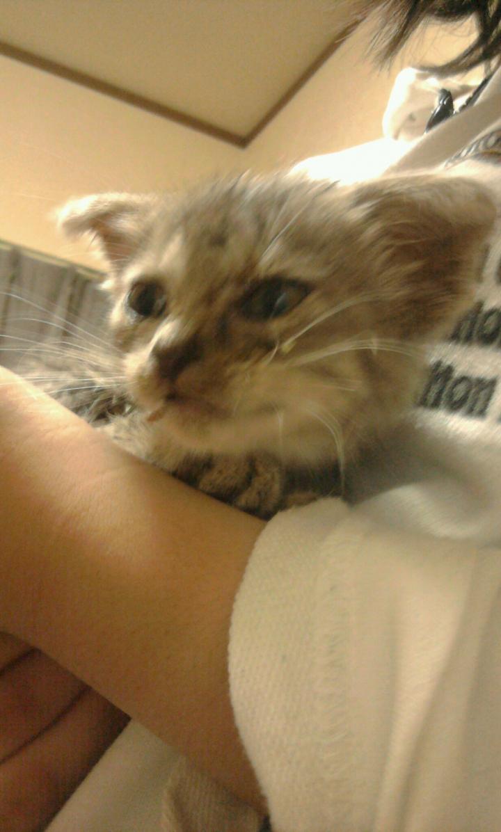 スグ見つかったけどご近所さんに聞くと飼い主はいない、3日ほど前から鳴き声が聞こえるとの事でじゃあ保護します!っと・・・やっちゃいましたw