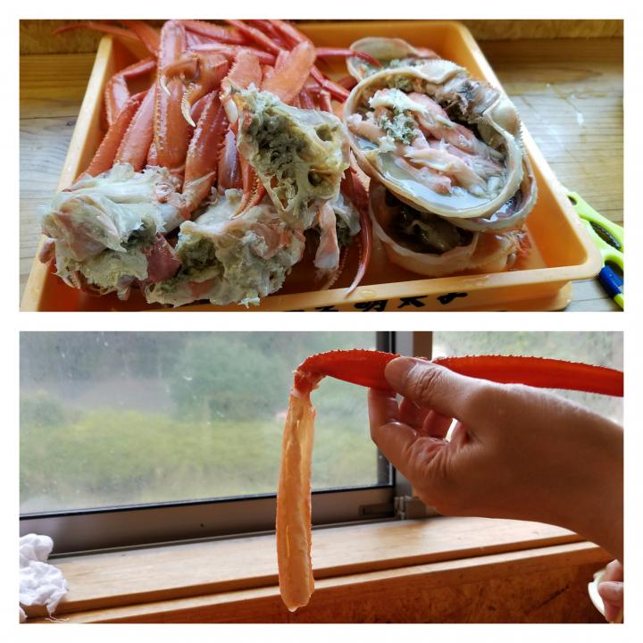 ここのカニは食品衛生上の問題で、水揚げしたら必ず冷凍しなきゃいけないんですって(条例で決まってるとか・・・)。