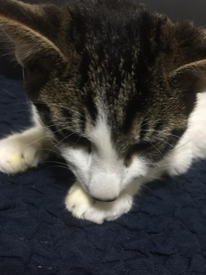 カプは至って元気いっぱい、よく寝て、よく食べ、よく遊んでいます。