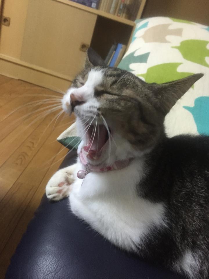 左下犬歯(猫なのに犬歯?)の歯茎が赤く腫れているのが見えました。