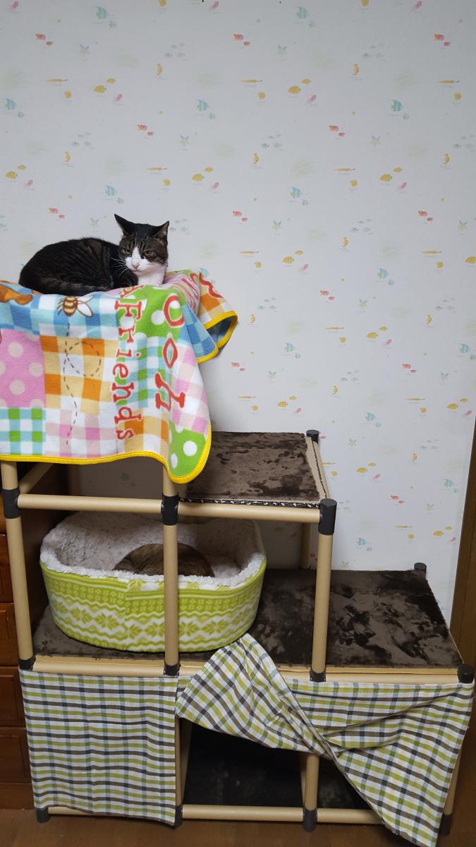 うちのにゃんこ達は主に外で走り回ってあそんでいるので、遊び場と言うよりお休み処となりました。