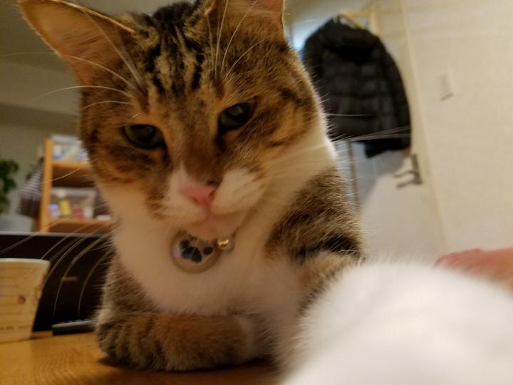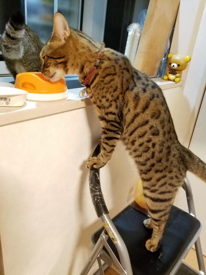 考えられることはポンちゃんが来たことによるストレスか、ポンちゃんのゴハンをつまみ食いしてるからか・・・。