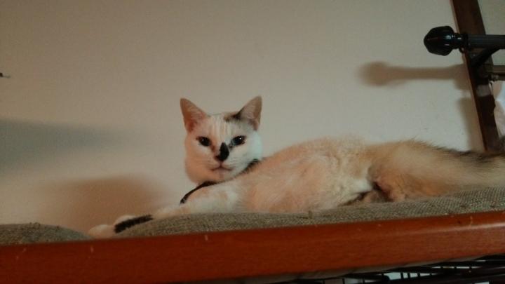 リンのお気に入りは、2階のキャットタワーの天辺です。