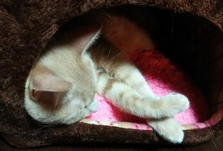 隣のキャットタワーのハンモックには、すずが寝ています。