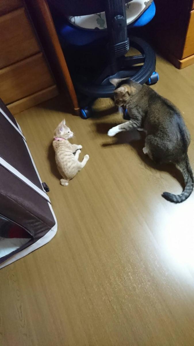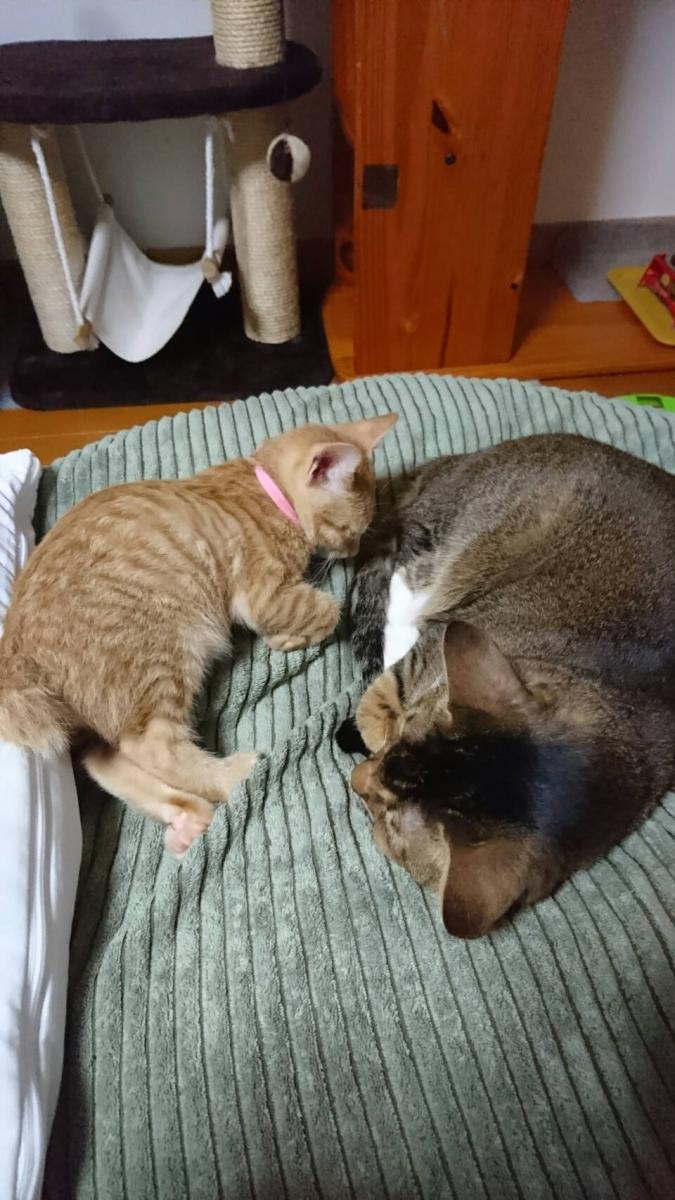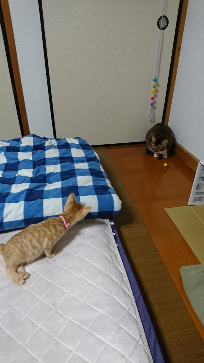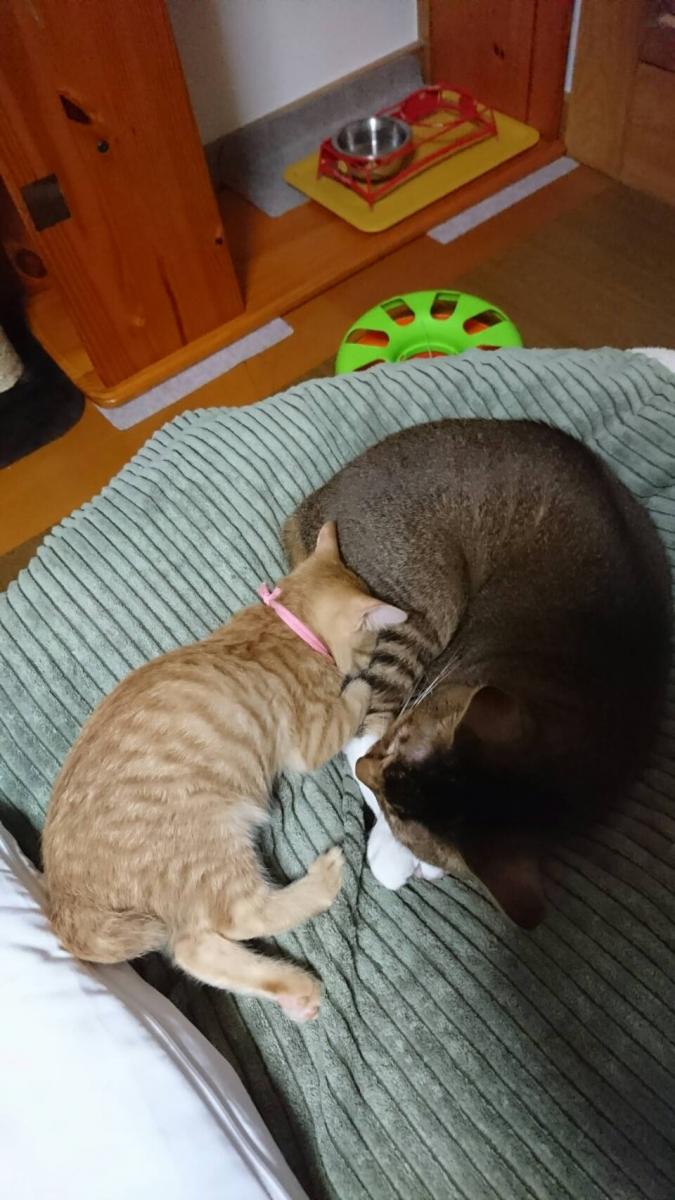 りんたら、まめ姉のももをかぷかぷしてしまい、まめはだいぶ我慢してくれてましたが、、、もーいやっ!って感じで逃げていってしまいましたっ!