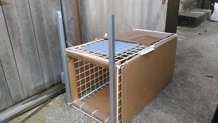 雨ざらしになっていて、一部壊れていた捕獲器「野良猫ホイホイ」も、知り合いの方が直してくれて完成。いつでも使えるようになりました。キャリーケースは小さくて、猫の下半身がはみ出ていたけれど、これならゆっくり入れます。今週は餌付けしてますが、餌を捕獲器に入れると猫が自分から入ってくれるようになったので、先日のように格闘しなくて済みそうです。