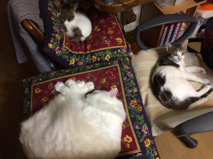 椅子が3つしかないから、椅子取りゲームみたいです。