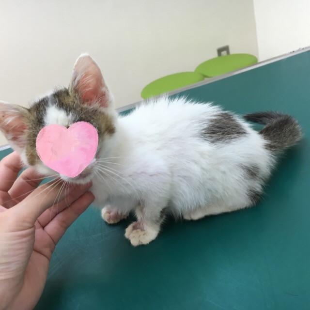 顔と前肢は目ヤニの影響か毛が一部抜け落ち