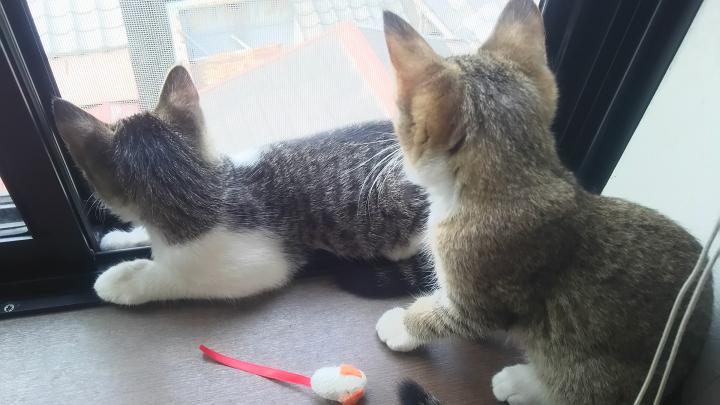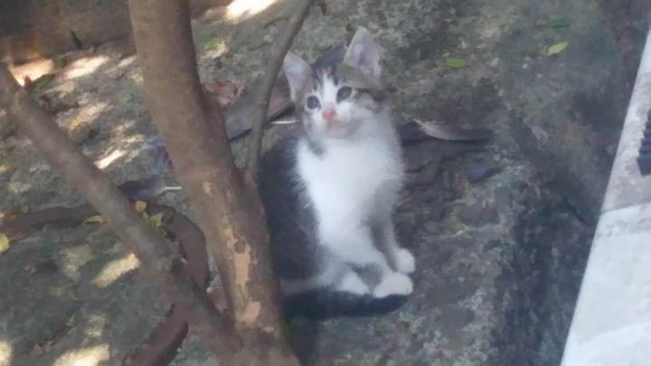 完全に室内で生まれ育った4ヵ月ほどの子猫。