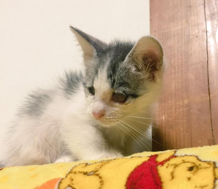 盲目の子は病院の先生から里親募集は難しいと言われたので、うちで飼うことになりました。