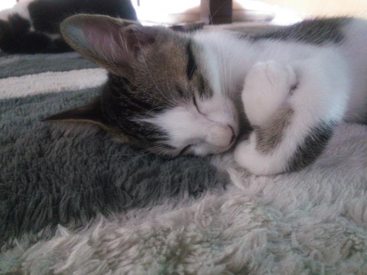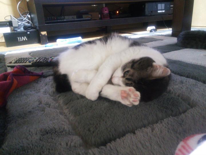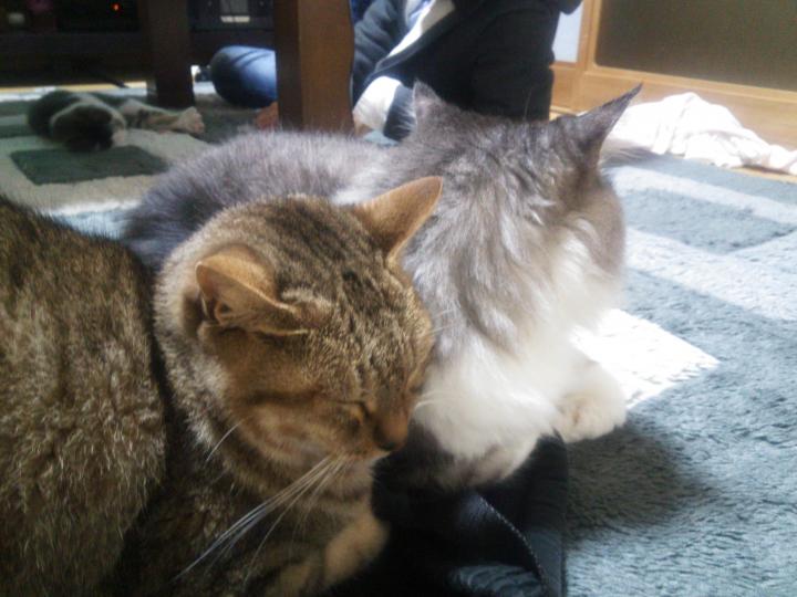 今日、コタ君の初きゅうを見ました。頭ではなく胸の辺りで、前足をきゅうっとさせました。