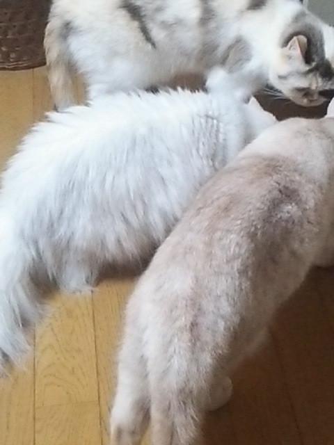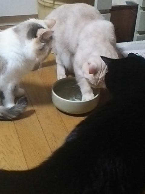 このあと、ゆずがジャブジャブ遊んだ後のお水を、そらはゴクゴク飲んでいました。