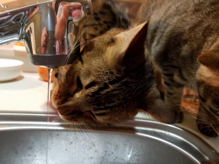 上から流れるお水に「テイテイ」やるのも大好きですが、周りがビチャビチャになるのでこちらは困る😅