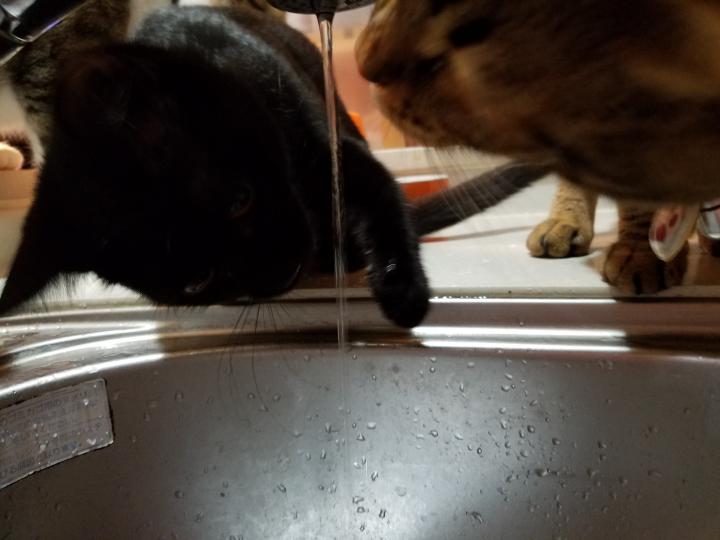 さすがに直飲みはしませんが、お兄ちゃんズがシンクにいるとやって来て、一緒に水遊びになっちゃいます💦