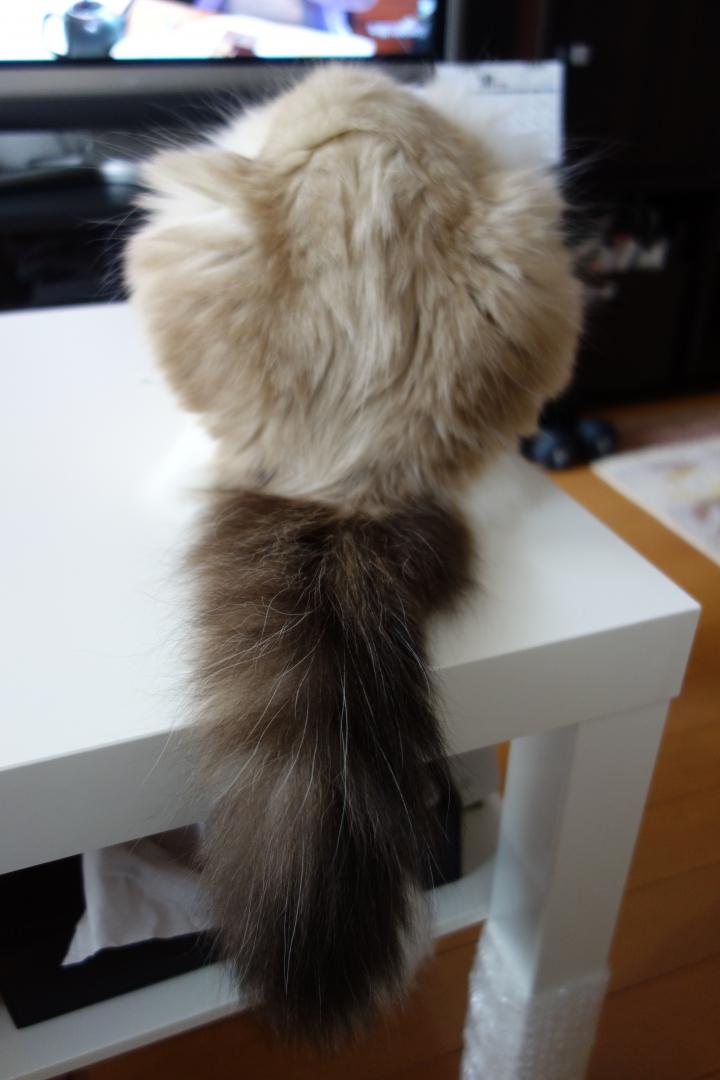 で、前がよく見えませんが首下のモフモフを感じられるお得な帽子!
