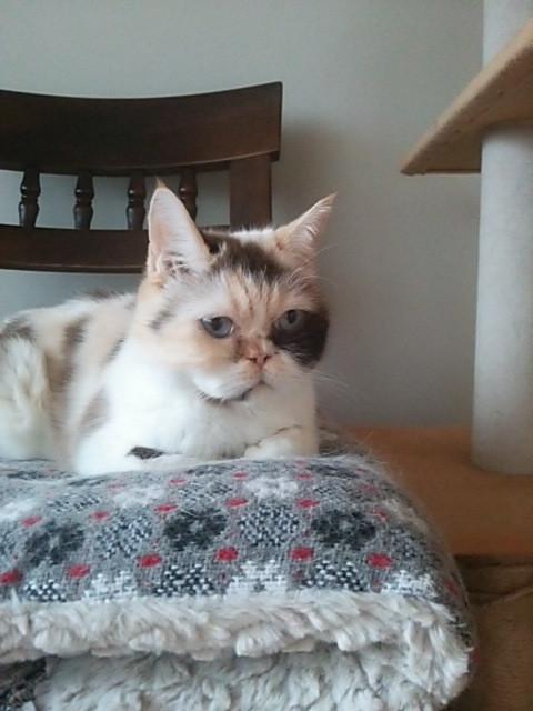 そらと一緒に寝ていたゆず。こちらへ走ってきてテーブルの上で待機。
