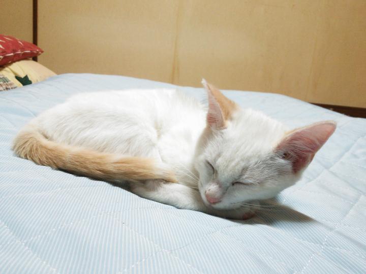 30分くらいハッスルしたあと布団に入ってきて、お気に入りのタオルをモミモミしながらチューチュー♪