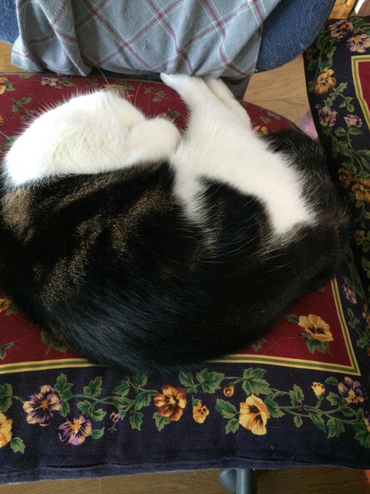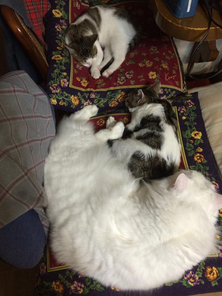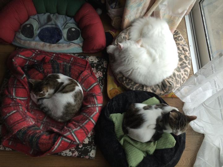 3ニャンは、猫ベットで日向ぼっこしながらお昼寝。