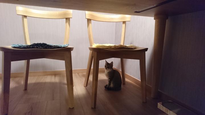 リビング探検が終わり、部屋に戻るよーと2階の猫基地へ戻ってもらうと、、