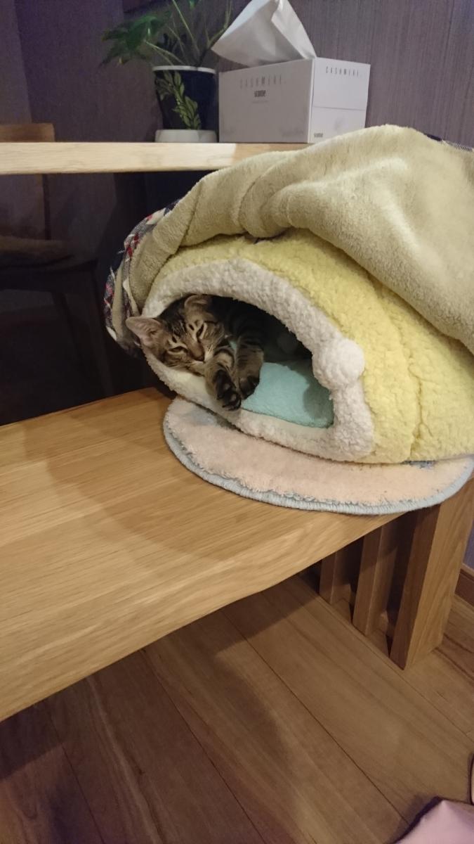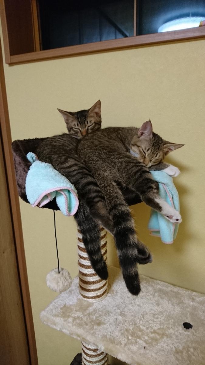 狭くてもここで二人で寝るのが気に入ってるのね(笑)