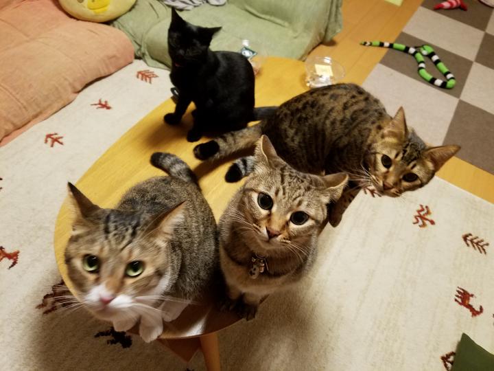 カリタの手に荷物があるものだから、4匹とも興味津々😆