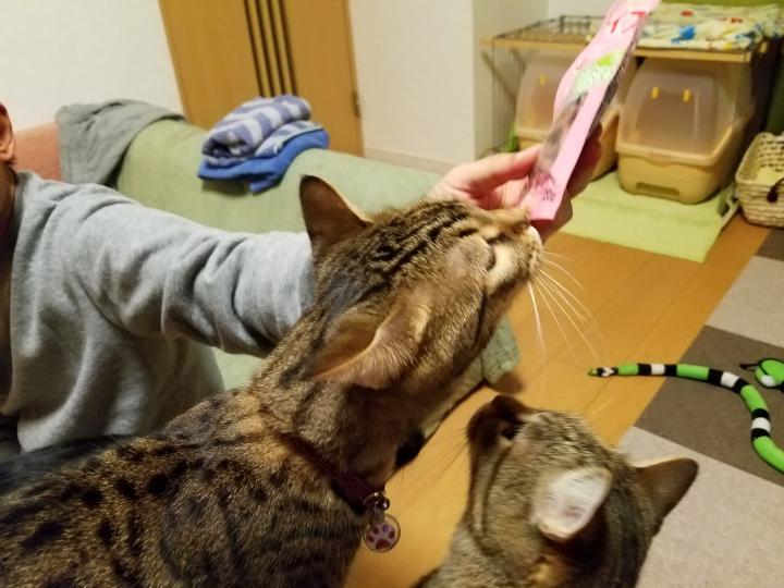 ニャンズにもオヤツをいただきました。
