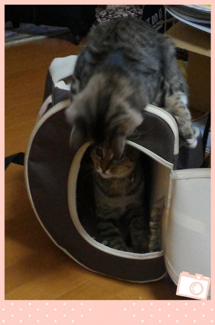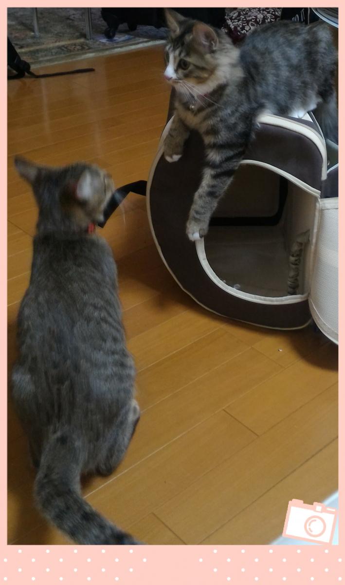 獣医さんの待合室で偶然一緒になった方に、可愛いと言われたシロちゃん&キジ君♪でも、キジ君は5カ月と聞いて驚かれました(笑)。成猫サイズだね、と。やっぱり大きいですよね~。