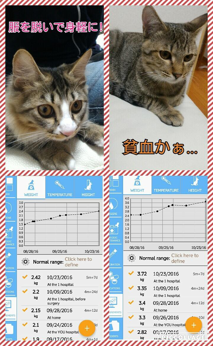 因みに、ここの獣医さんでは、術後服は300円。エリザベスカラーは1,000円。頭部の傷とかでなければ、服の方がお値段も、ネコにとっても良さそうですね♪