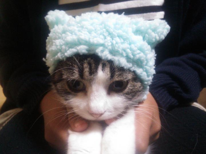 先日、ガチャガチャでねこのかぶりもの「ねこひつじちゃん」なるものを手に入れてしまいました。