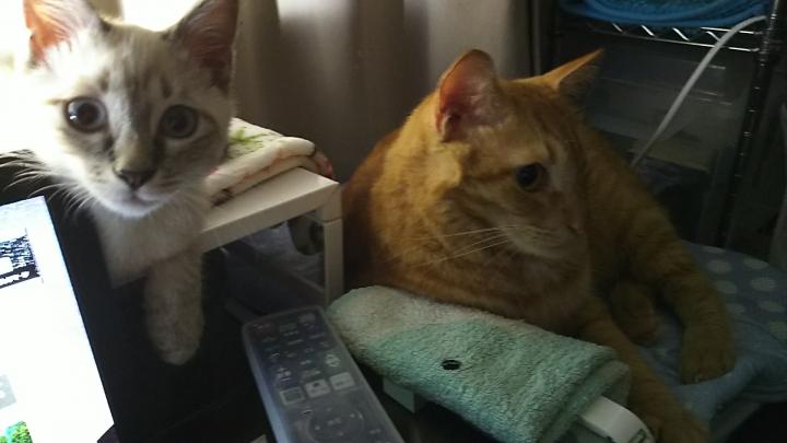 猫の社会化とやらを今のうちに学んでくれたら、と先住猫に期待してます。