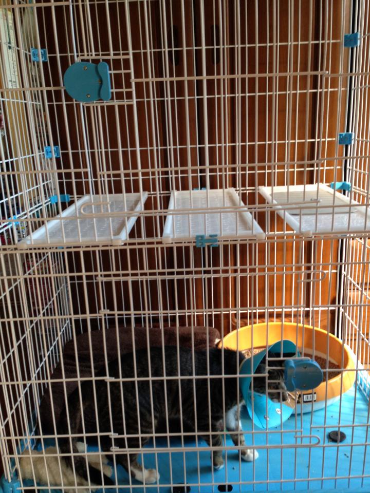 他の猫が怖がるし、リナも少し落ち着かせたくて、ゲージに入れましたが、壁をよじ登るので、よじ登れ無い様にしました。