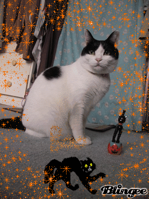 ジャック・オ・ランタンの下を押すと、黒猫ちゃんが糸を外したマリオネットみたいに倒れる仕組み。