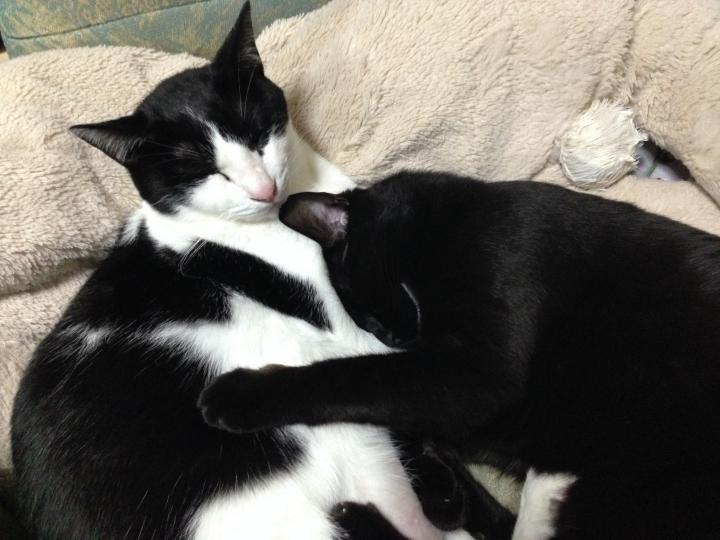 写真はうちの一号猫、サツキさん。オス。黒猫はカンナさん、メス。