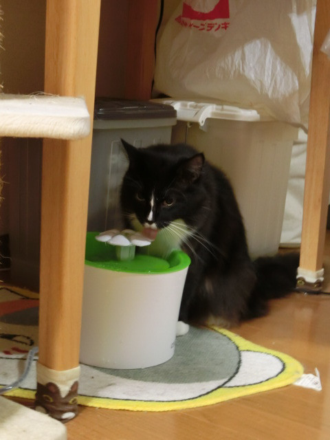 相変わらず五右衛門が飲んだ後、給水器の回りは水浸しです・・・・