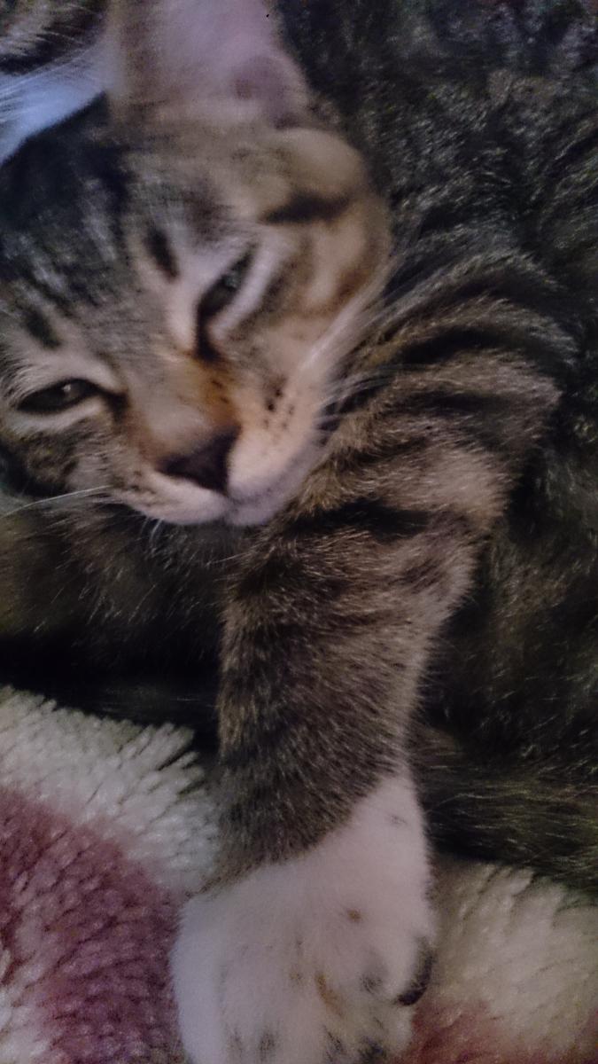大物だなー、なんて思ってたけど良く見たら診察台の上が肉球汗でべっちゃべちゃ。しかも震えてた。