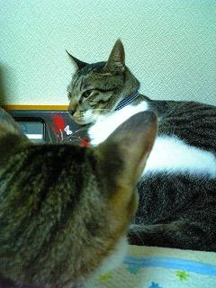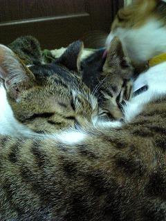 それに便乗しておっぱいを吸おうとする孫猫 よもぎ(1ヶ月)