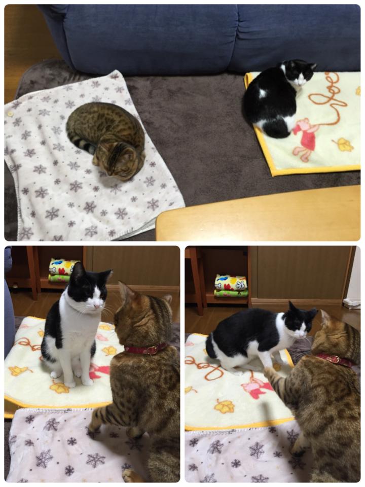 でも、しばらくすると小競り合いが。りんが某JさんちのT君のように突撃隣のグルーミングしようとしたんだけど、拒否られました。