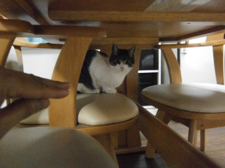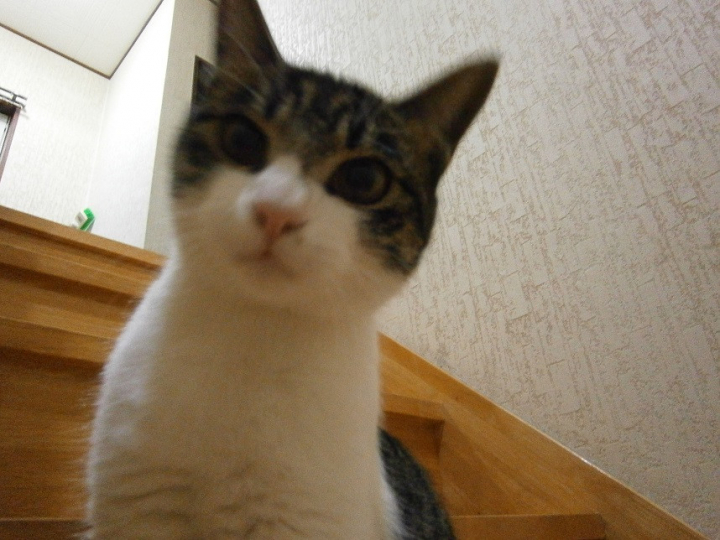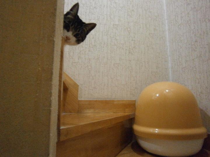 掃除の後、階段をソッと覗くと・・・案の定 階段チラ見。