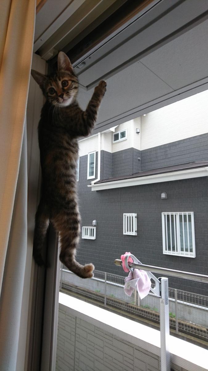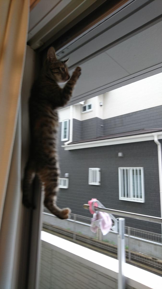 そんなとこで、お外みてないでキャットタワーで普通にみたら?😁