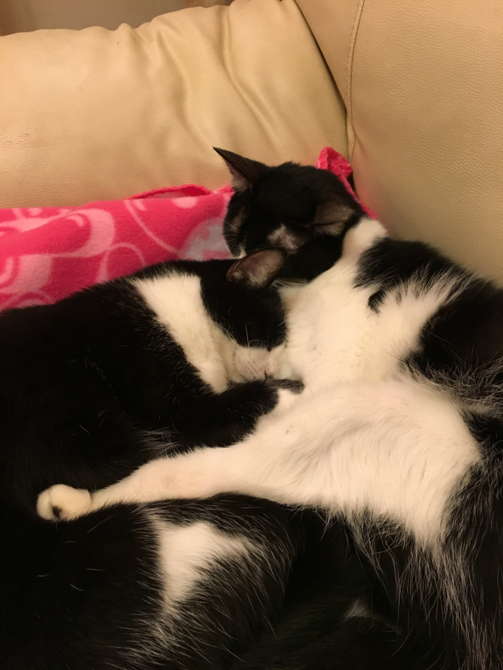 お家に帰って来た直後は落ち着かない様子で暫くの間、家の中をウロウロしていましたが、今はリラックスしてソファで寝ております♪( ´▽`)