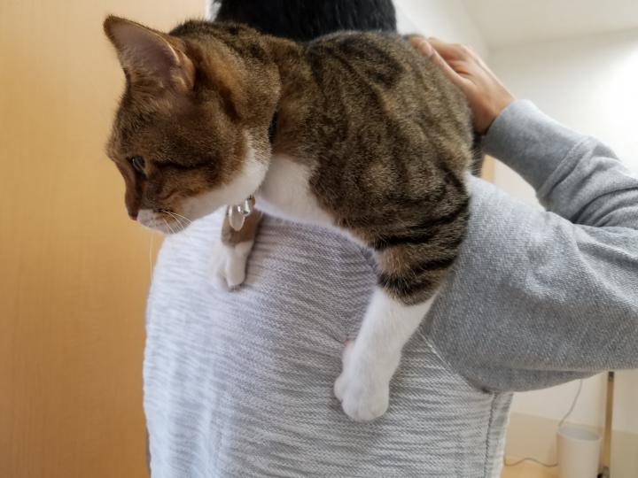 診察室で自宅のように徘徊するサクちゃん、おとさんに捕まりました(当たり前です😠)。